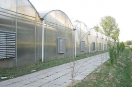 PC板溫室可做成拱形或者尖頂,該溫室的覆蓋材料為聚碳酸酯中空板(PC陽光板),與其他覆蓋材料相比,具有采光好、保暖、請便、強度高、防結(jié)露、抗沖擊、阻燃、經(jīng)濟耐用等優(yōu)點,該板的向陽面具有放紫外線圖層,抗老化性能達10年。溫室使用壽命長,外形美觀漂亮,保溫效果好,冬季可節(jié)省加熱能耗。